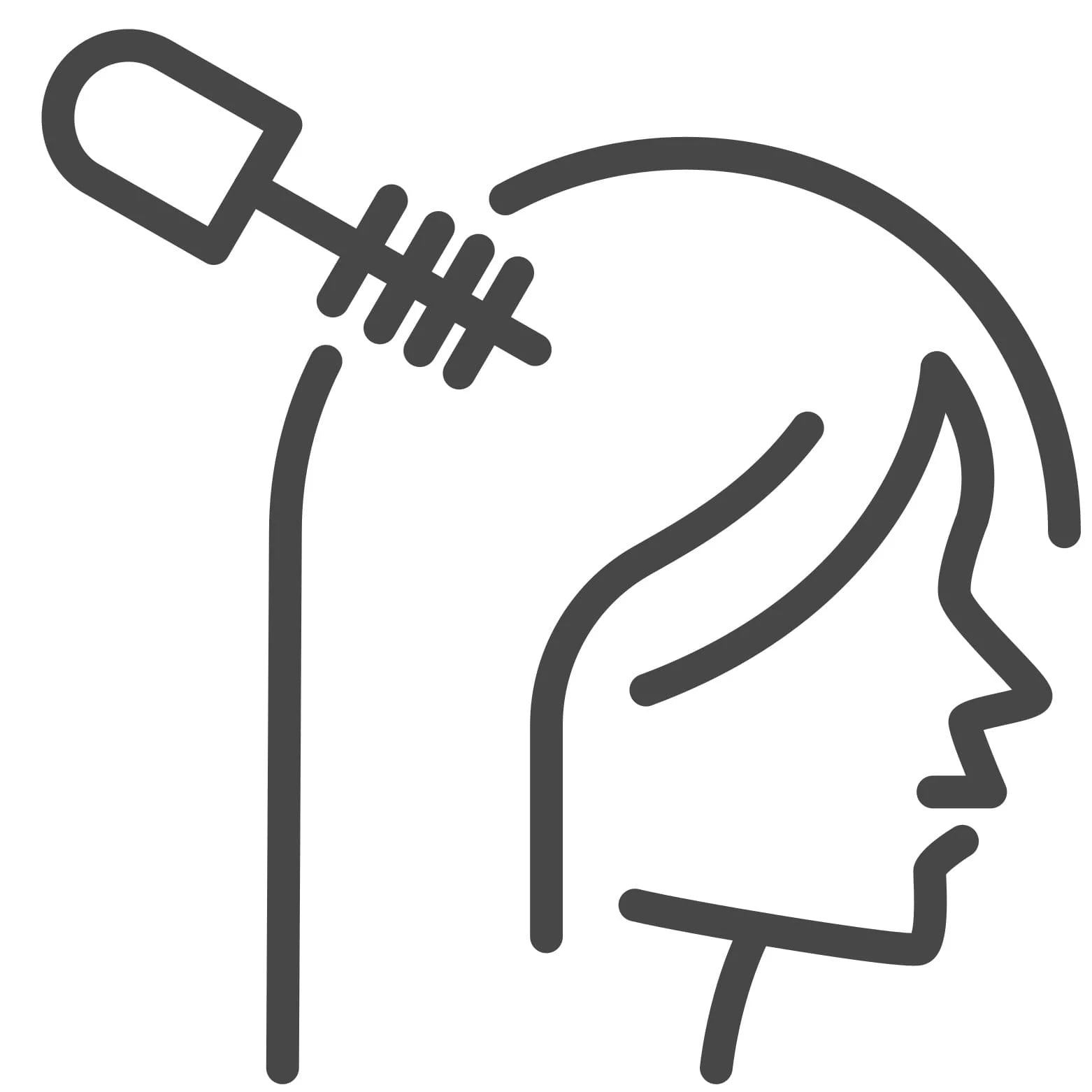 Hold the hair gently with one hand and apply the product with the special brush using the other hand.